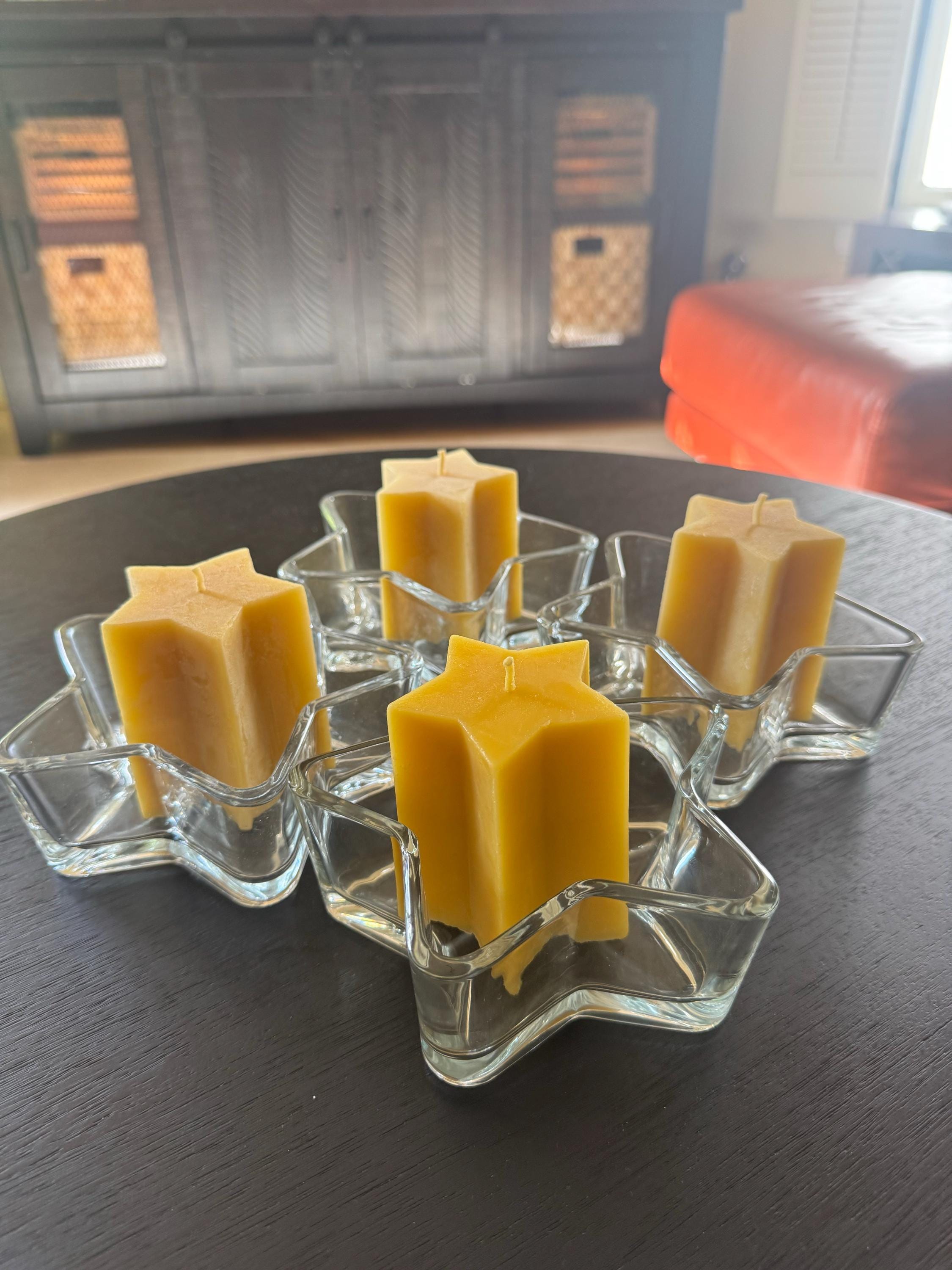 Beeswax Star Candle: 100% Pure Organic Pillar, Natural Honey Scent