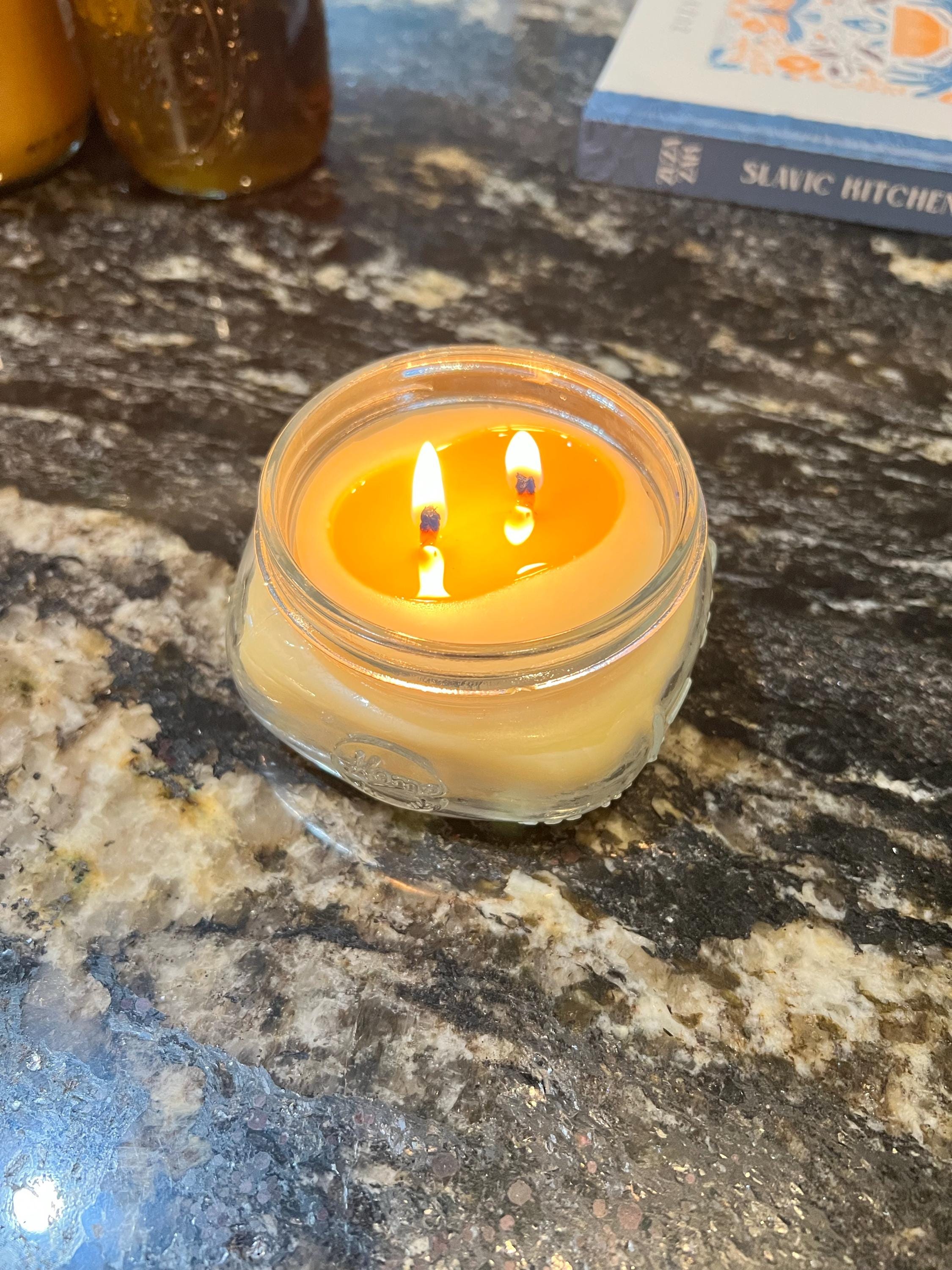 100% Pure Beeswax 8oz Jar Candle in Flat Mason Jar. Scented or unscented Natural Honey Free Shipping