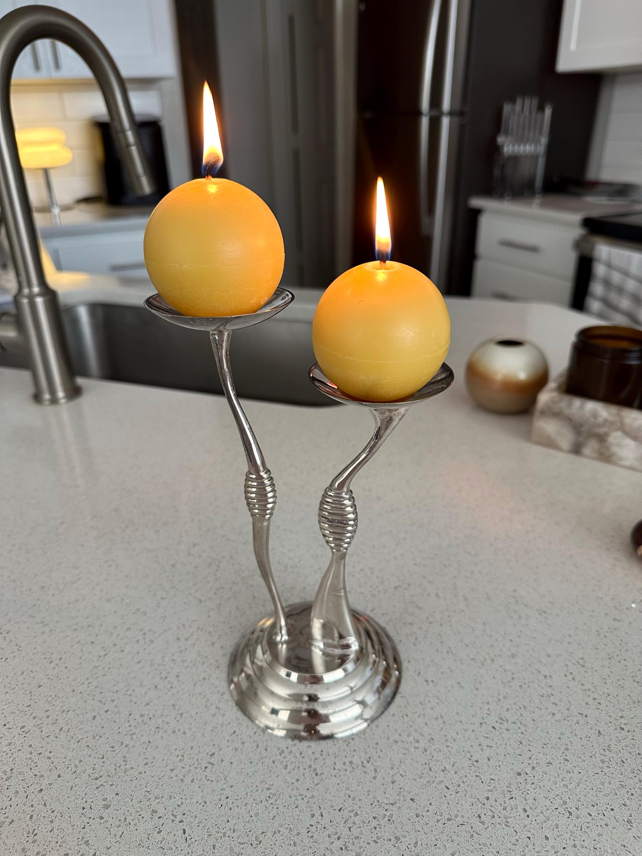 These unique sphere beeswax candles will add elegance with it's shape and a rustic natural feel with the 100% pure beeswax. This candle is unscented other than the natural scent of warm honey. It is 2.5"x2.5" and the beeswax doesn't drip so no container is necessary. You can put them on your dinning room table and light them and never worry about a waxy mess on your table.