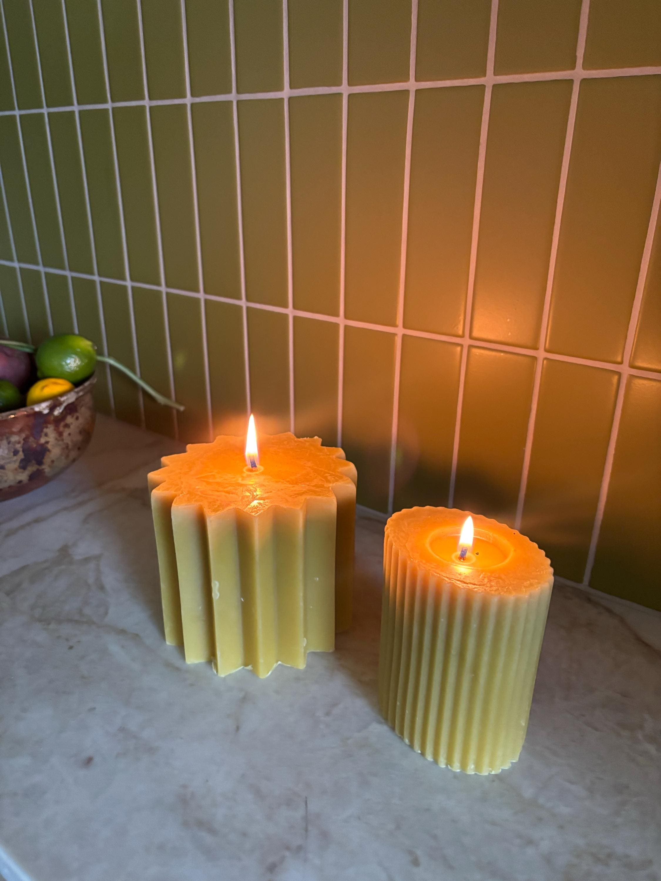 Organic Beeswax Pillar Candle: Fluted Honey Scented Candle (2”x3”x6”)